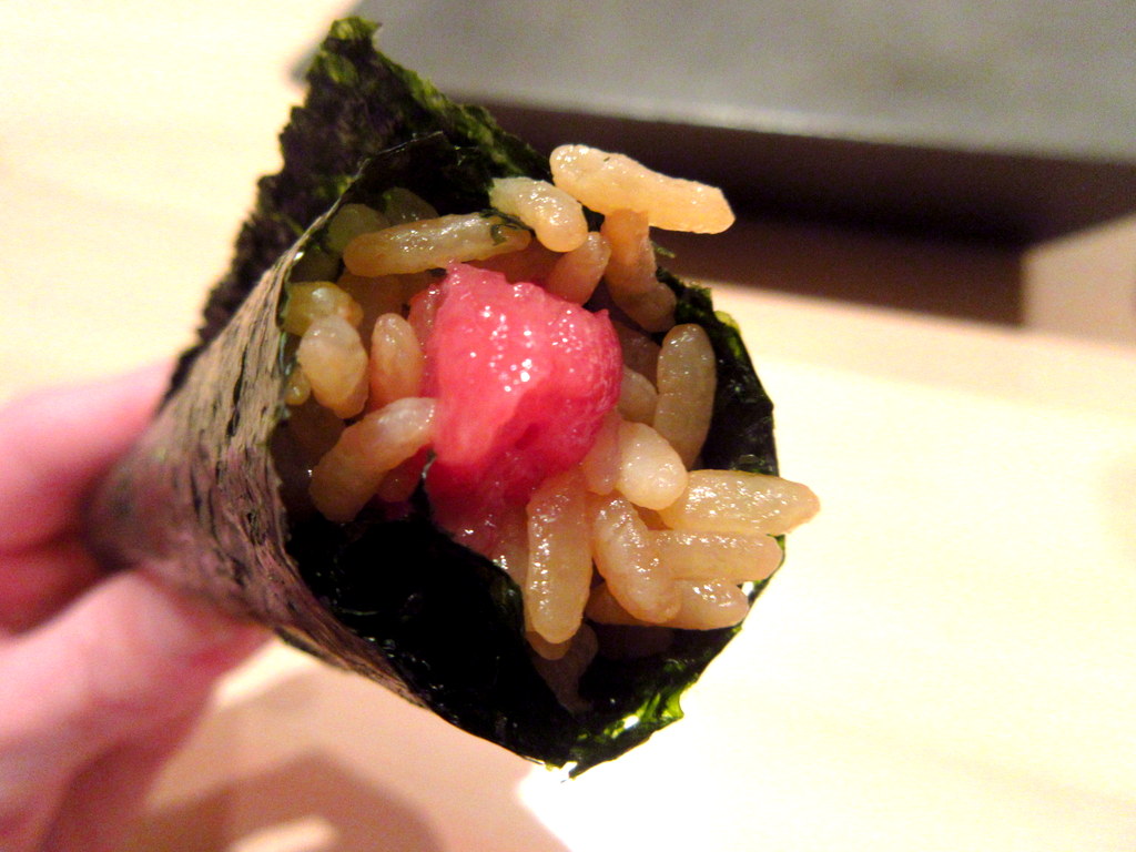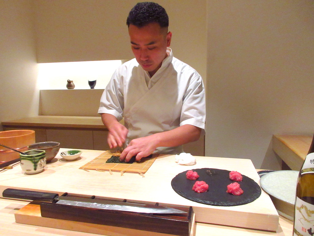 これに合わせた料理は青森県の大間のマグロの手巻き寿司。