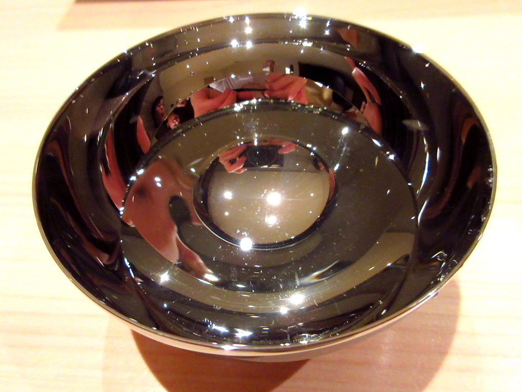 これに合わせる器は、球体の形をした鏡面研磨のステンレスの芸術「満月」