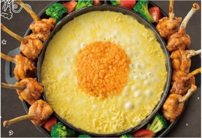 こちらのUFOフォンデュは、手羽もとの唐揚げをチーズに絡めるんだとか。