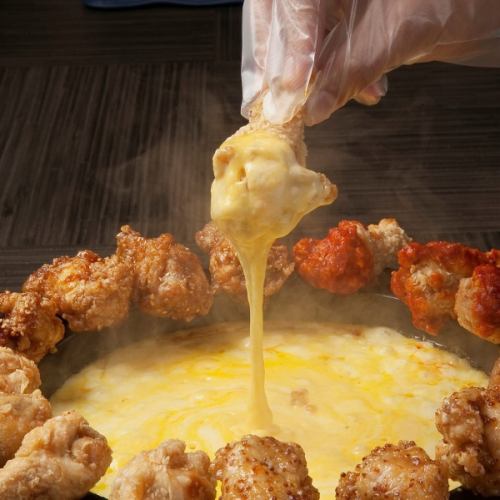 このから揚げを贅沢にチーズフォンデュして食べれば病みつきになりますよ!!