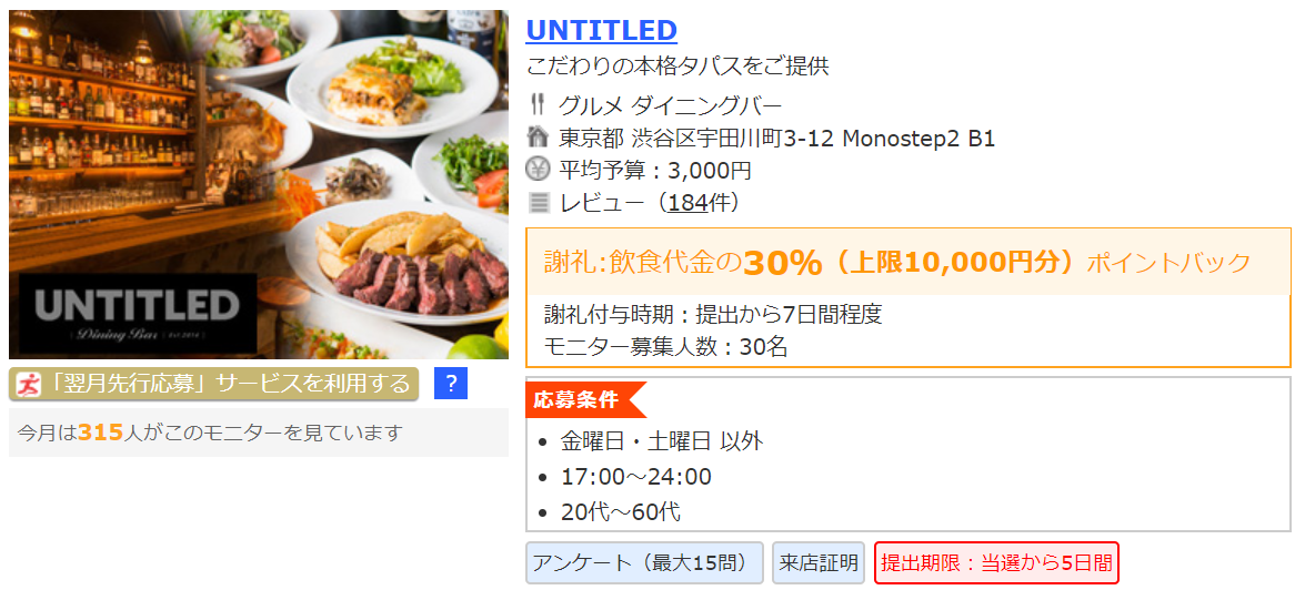 モニターサイトから応募して、店舗に行き、その後アンケートを提出すると