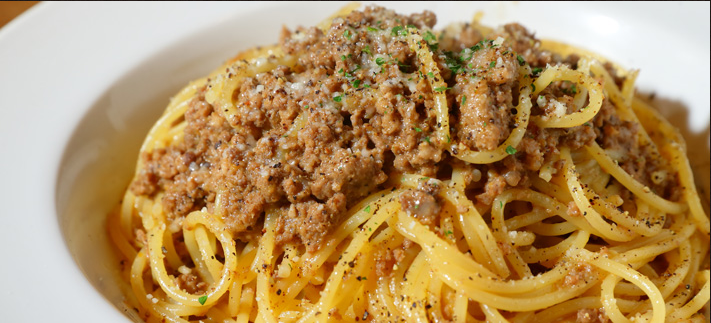 自家製のボロネーゼソースと粉チーズをかけて焼き上げているんです!!
