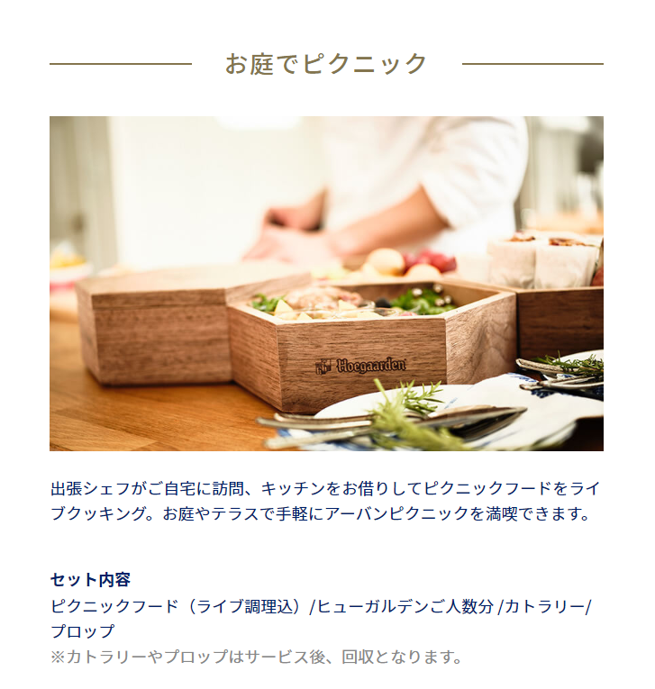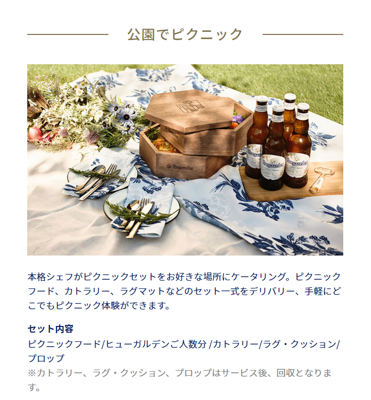 美味しい食事とヒューガルデンで、上質なピクニックを楽しみましょう!というもの。