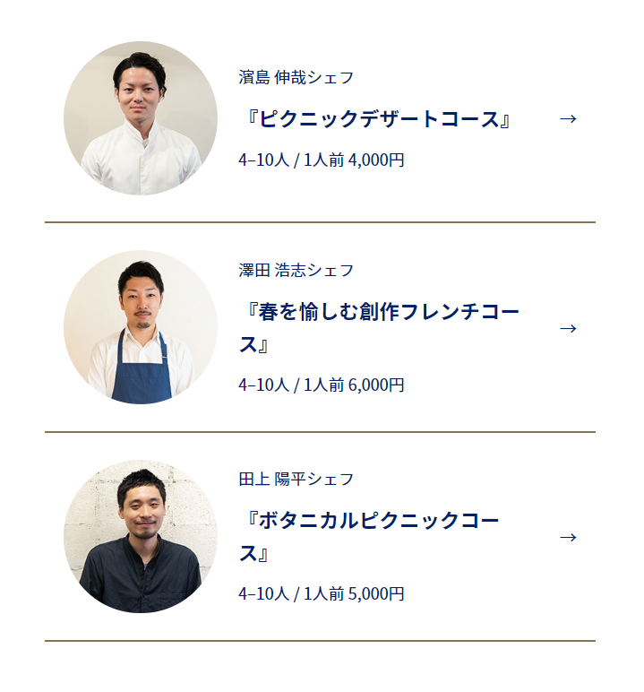 この3名のシェフは、今回のキャンペーンで実際にお庭ピクニックの出張シェフとして登録されています。ライブクッキングもあるので、プロの手さばきが見れるのも嬉しいですね♪