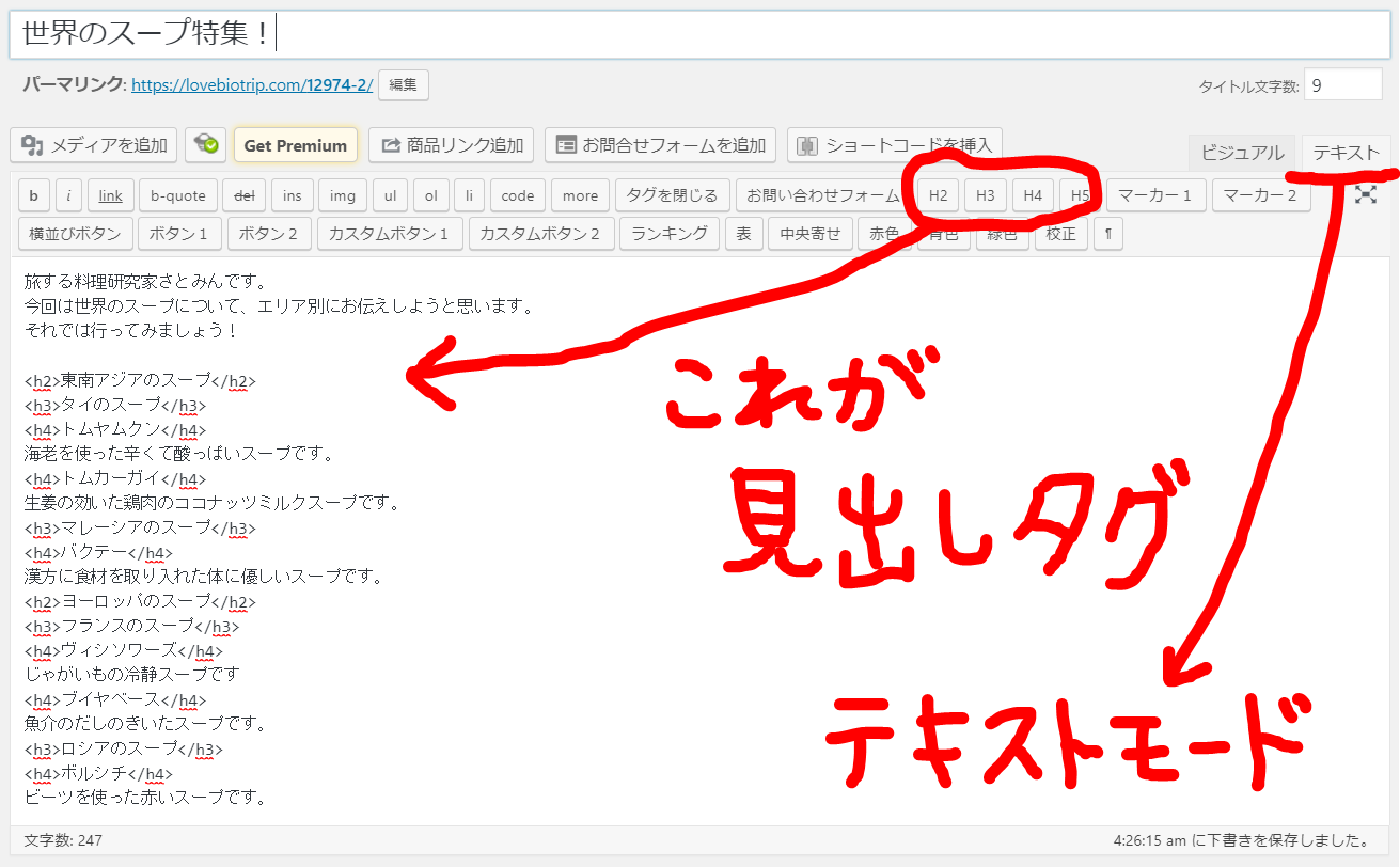 記事の中のトピックは基本、見出し2(h2)から見出し4(h4) で構成されるようになっています。