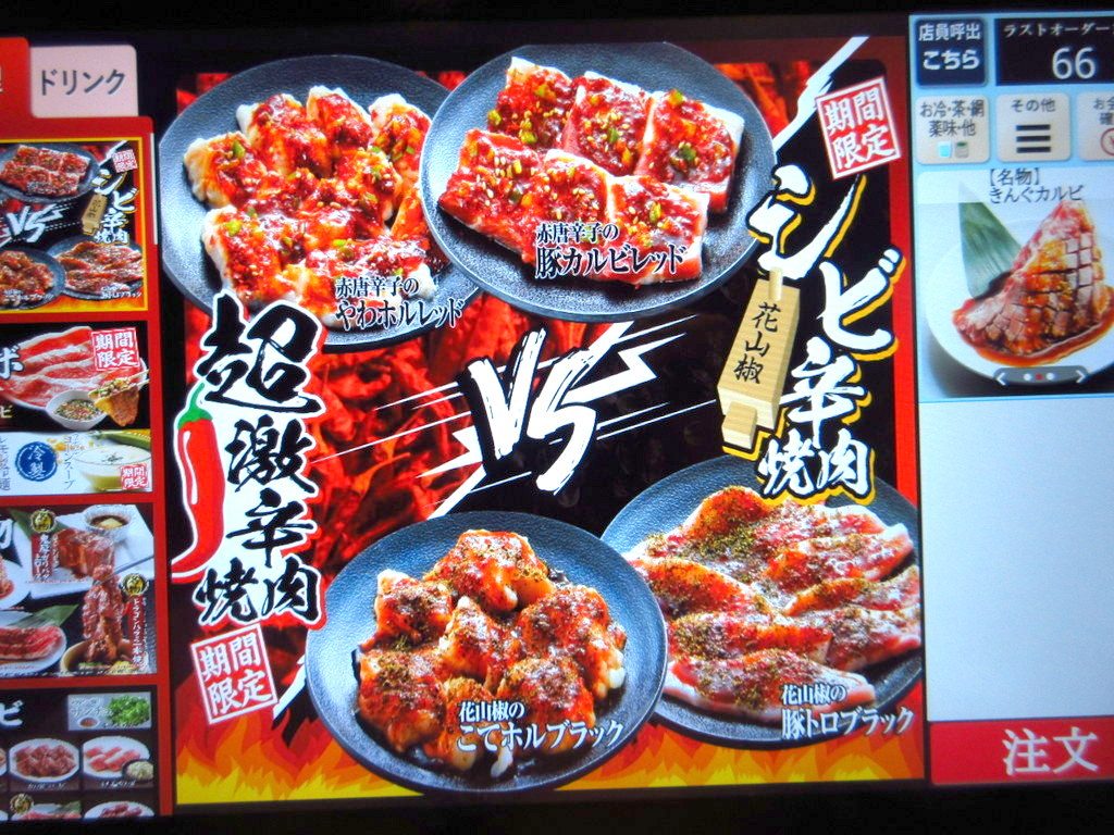 唐辛子系の超激辛焼肉と花山椒系の痺れる辛さの焼肉の
